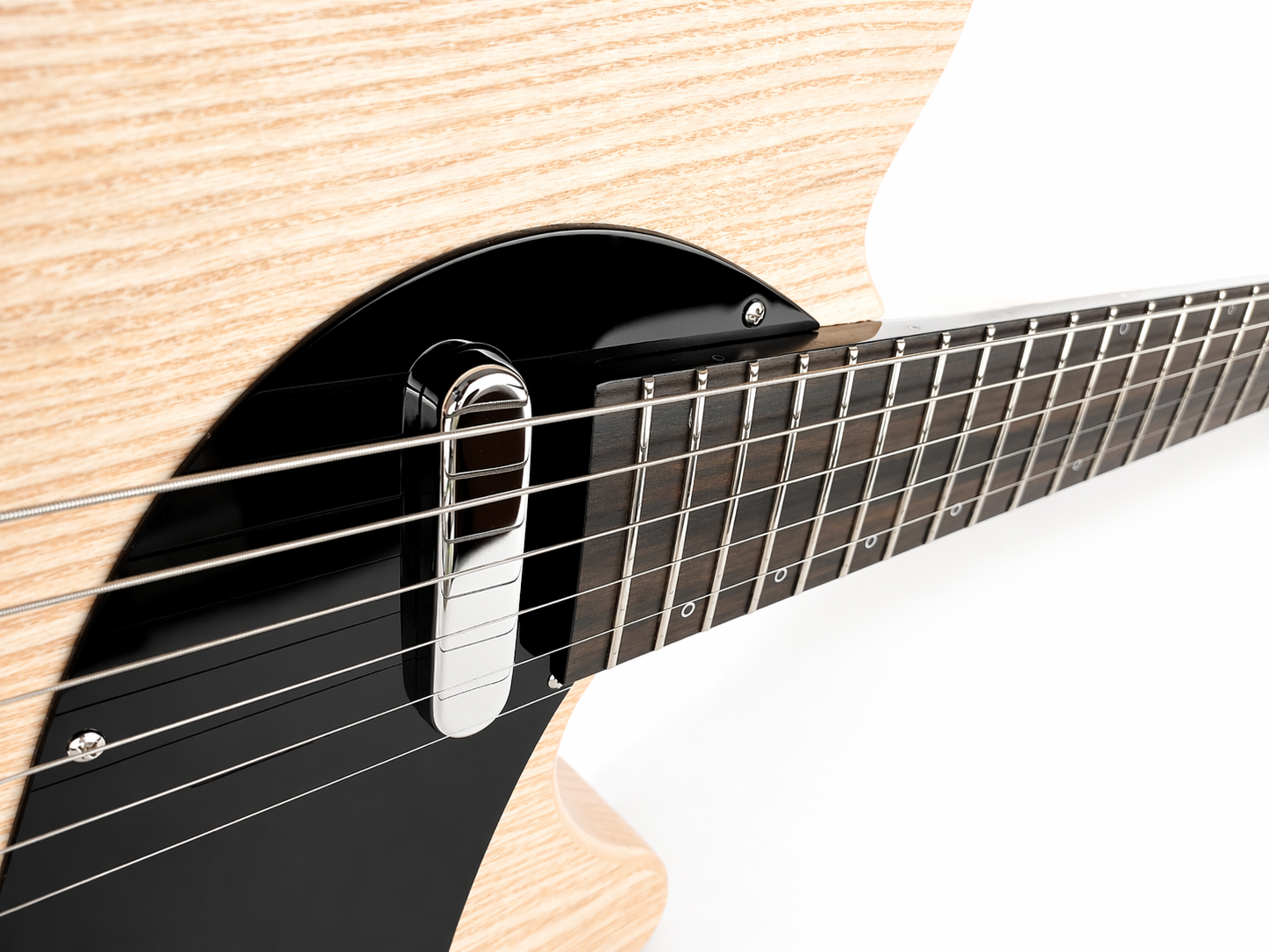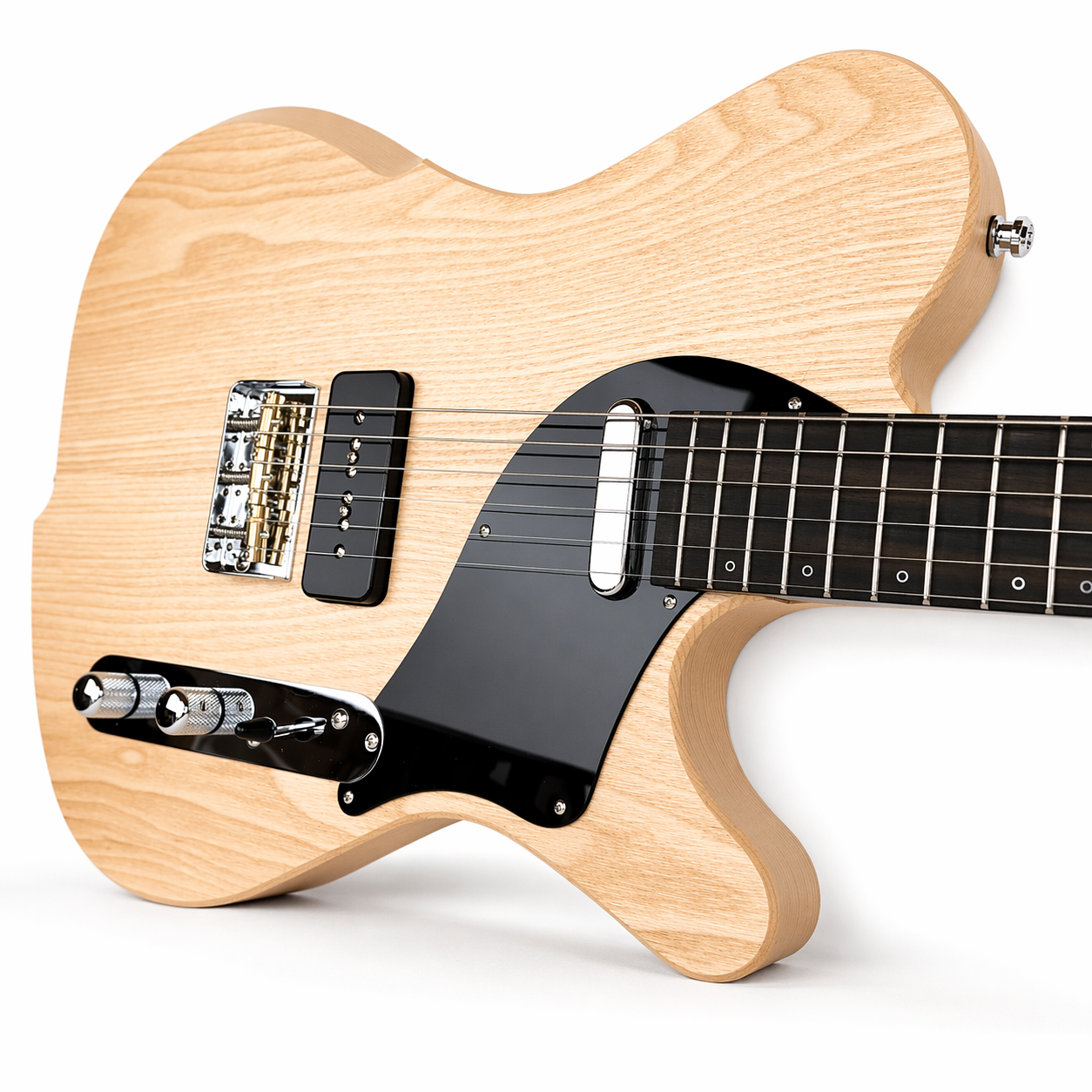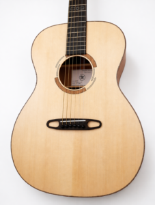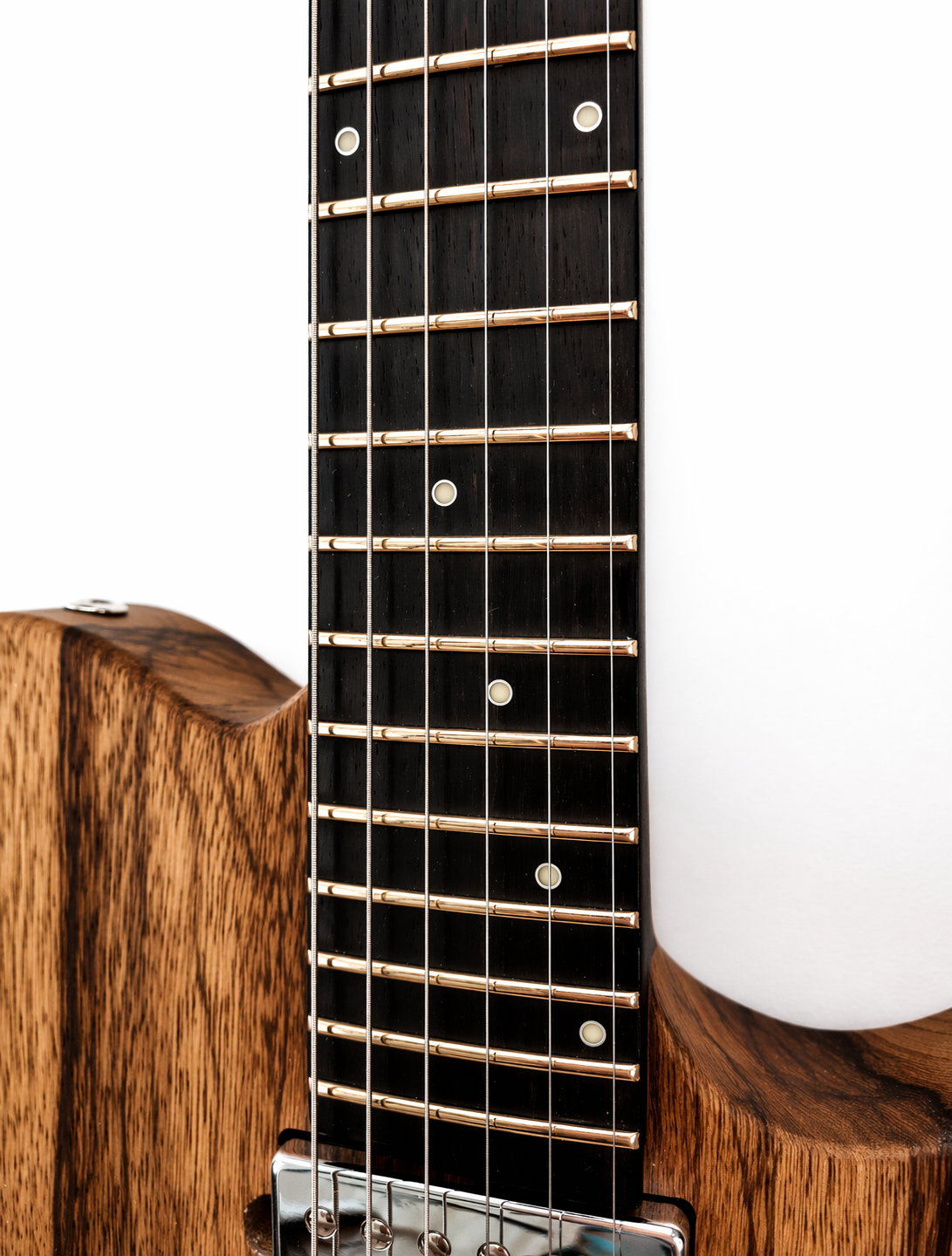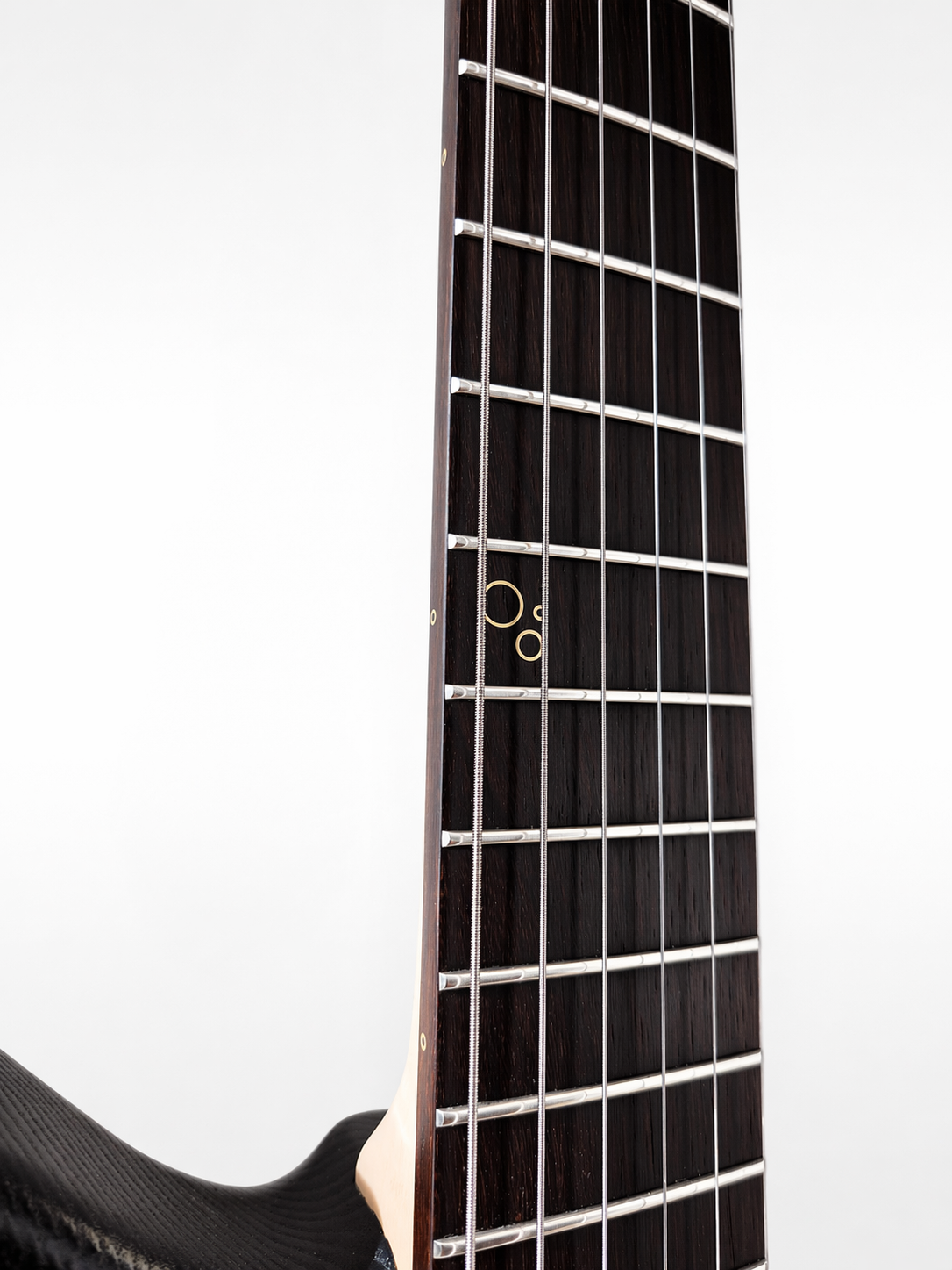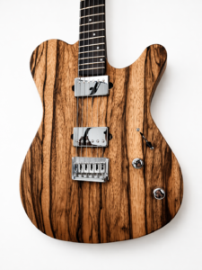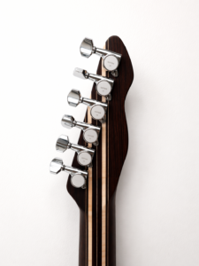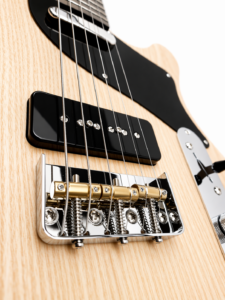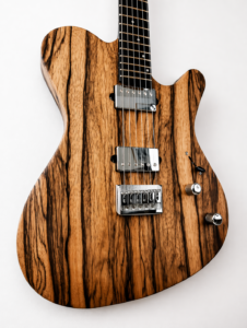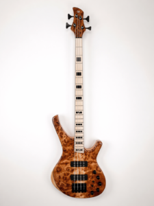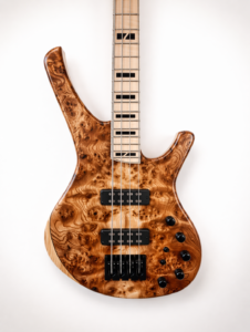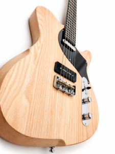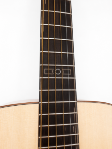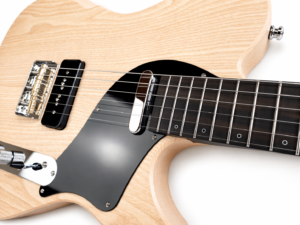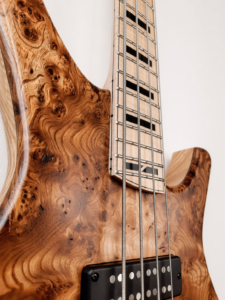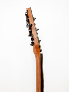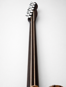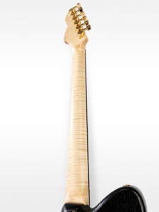 22 frettes, radius 12″, diapason 25″, manche collé