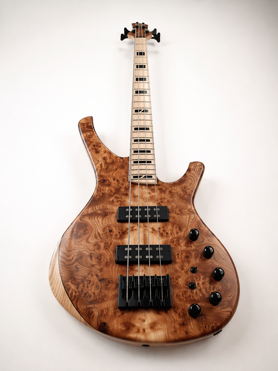 Electronique : préampli Glokenklang avec volume, blend, aigu, medium, bass + un switch par micro serie/parallèle